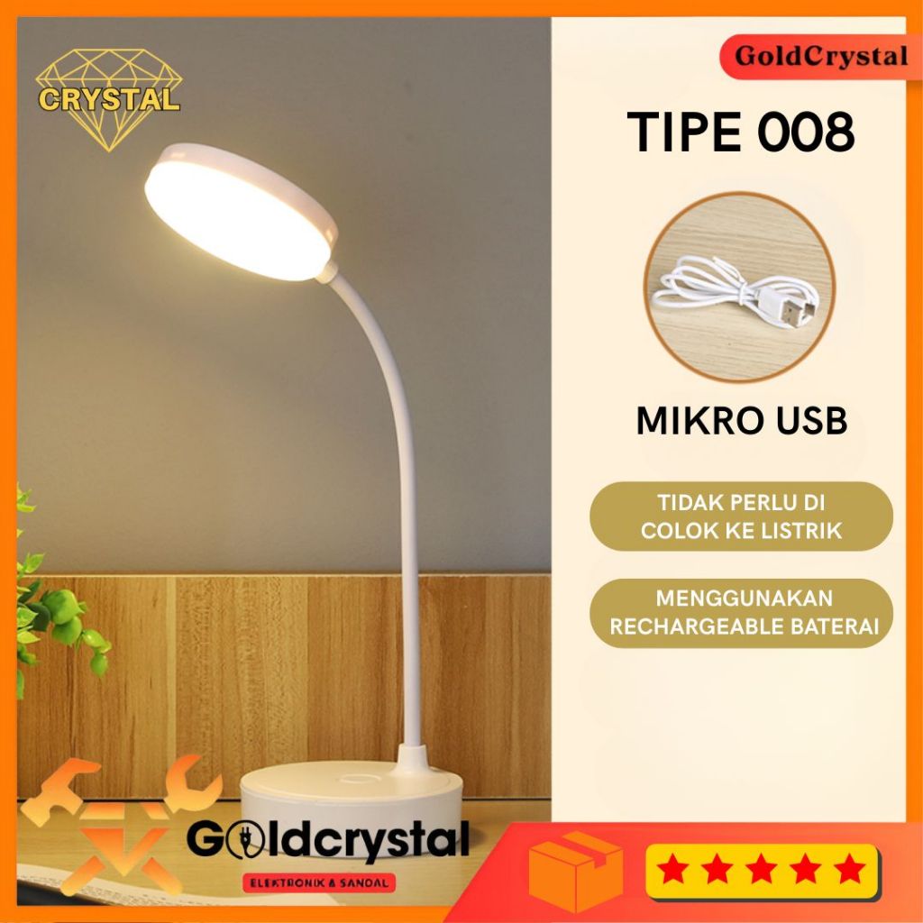 Lampu Belajar Tricolour Sentuh 3 Warna Baca Meja Kerja Cas & Colok Listrik