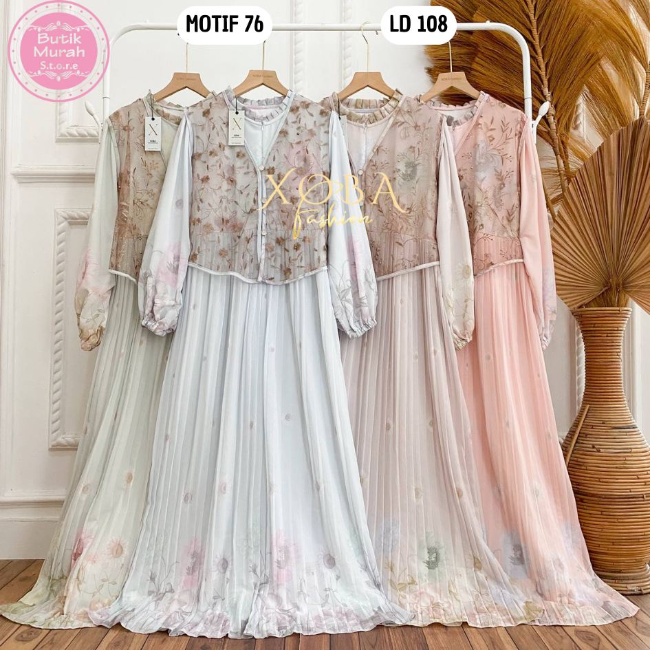 Xoba 3554 LD 104 Gaun Wanita Kasual Gaun Ceruti Motif Bunga casual panjang mix Tile Brukat