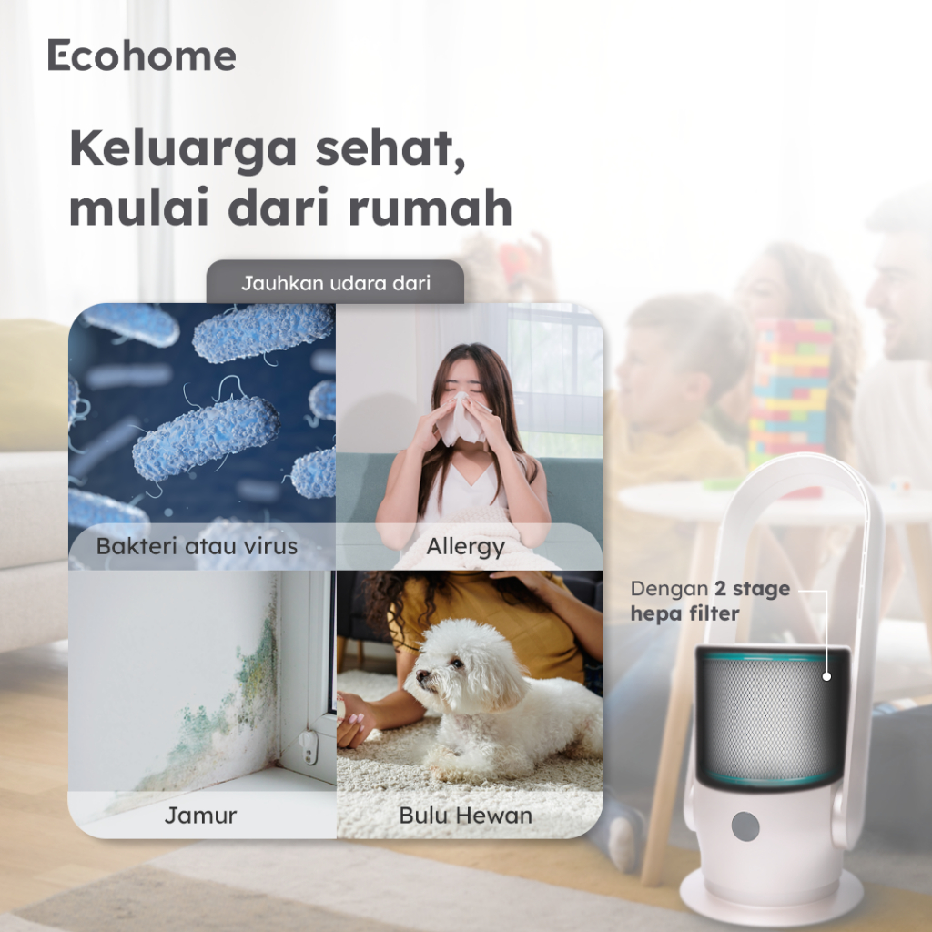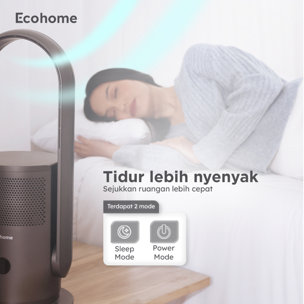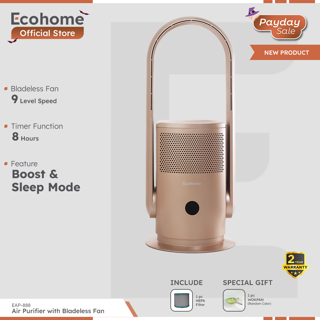 Air Purifier & Fan Bladeless, Remote Ecohome Eap888 Penyaring Udara, Osilasi