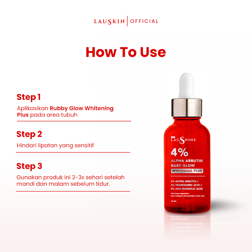 Serum Whitening Laushine Ruby Glow Whitening Plus 4 PERSEN Alpha Arbutin Regenerasi Kulit