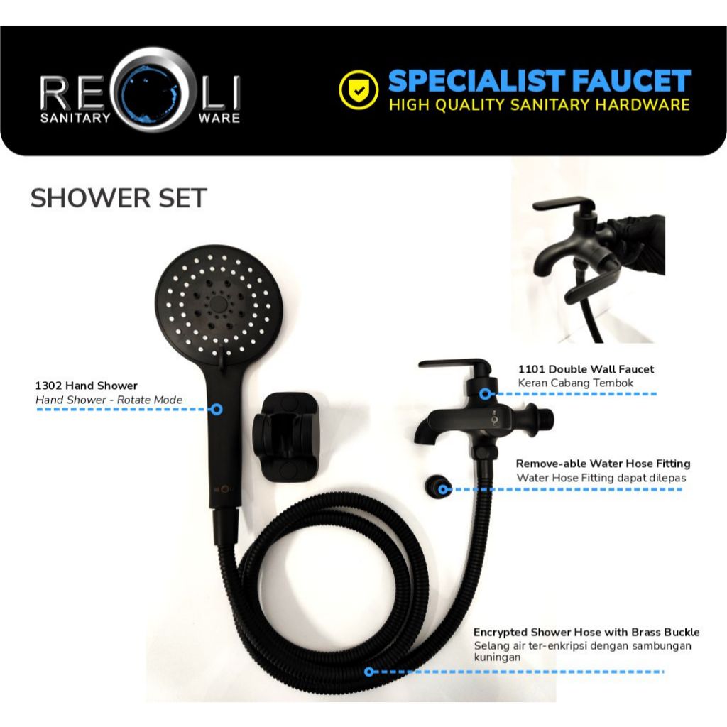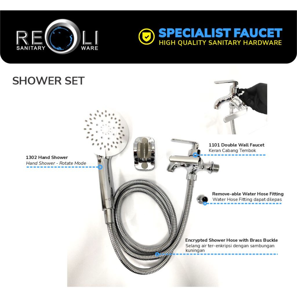 Keran Reoli Paket Hemat Cabang Hand Shower Set Lengkap Kamar Mandi Praktis