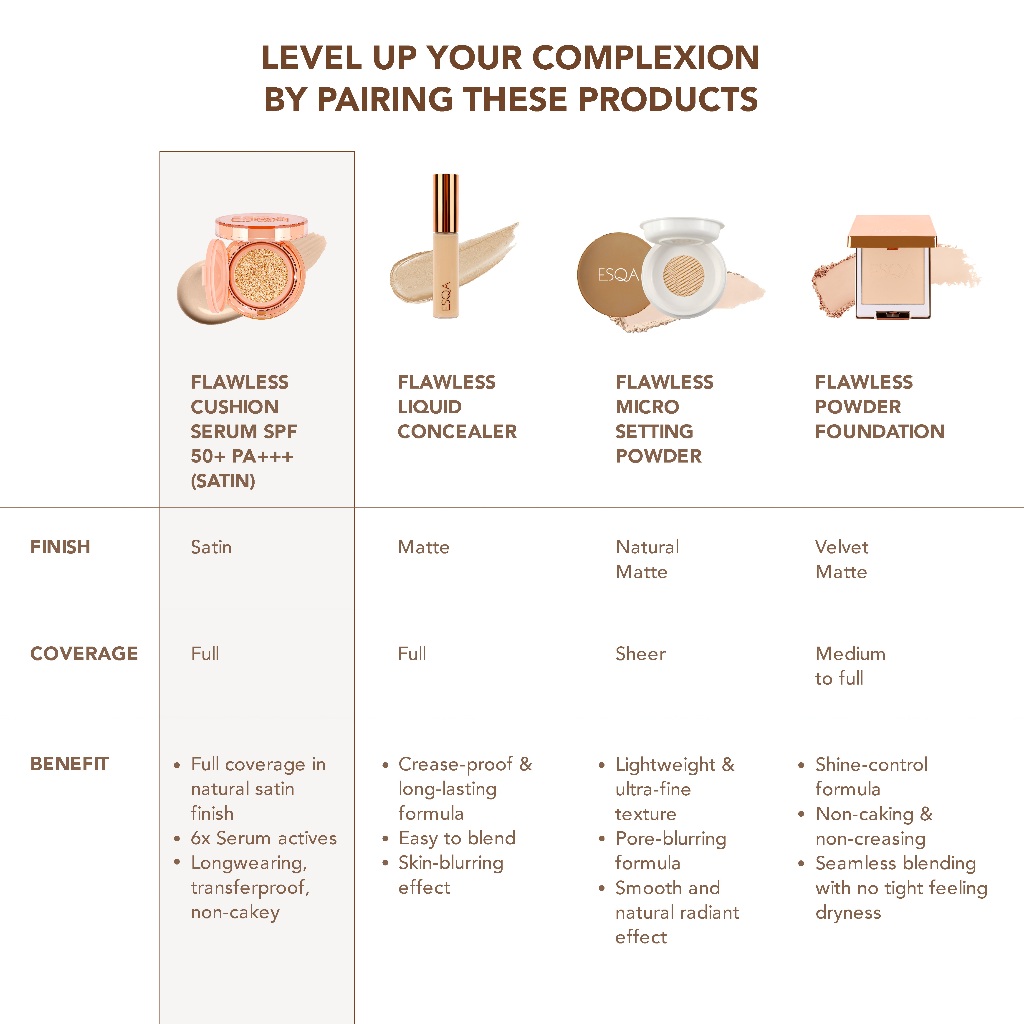 Cushion Esqa Flawless Serum Spf50 Pa+++ Satin Finish Lightweight Base Makeup Foundation