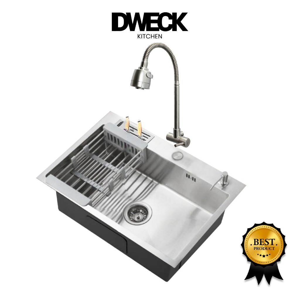 Sink Stainless Steel 304 Silver Medium Size Paket Kran Dinding Tarik Dweck Kitchen Minimalis