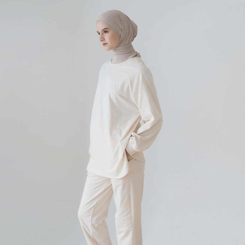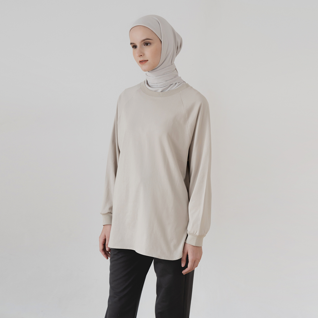 Kaos Olahraga Wanita Uma By Aska Label Raglan Oversized Lengan Panjang Muslimah