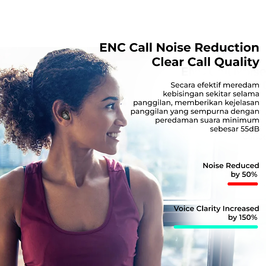 Earphone Tws Bluetooth 5.3, Enc, Ipx8, Deep Bass, App Control, Sport Tozo T6s Tws, Enc, Waterproof, Bass, Sport