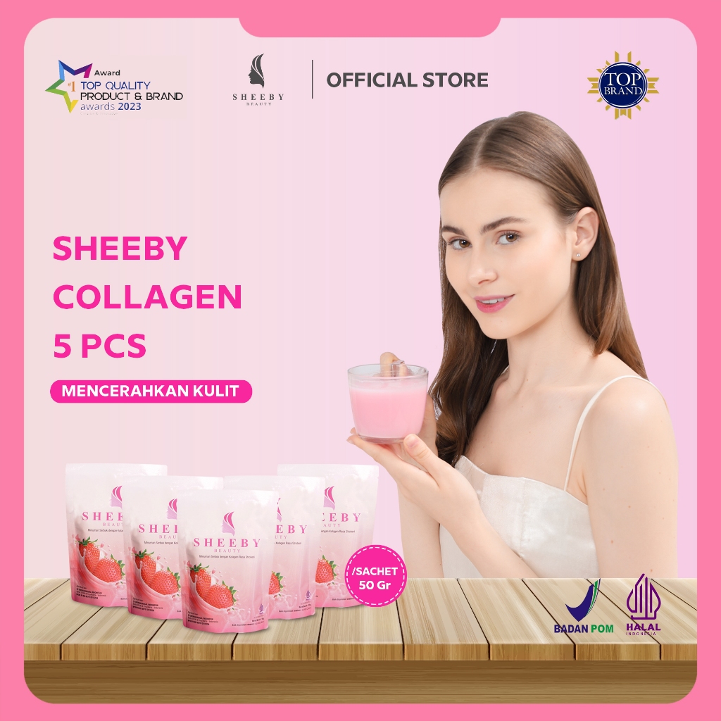 Minuman Collagen Whitening Booster Sheeby Beauty Paket 5 Pcs Anti Acne Glutathione Cerahkan Kulit