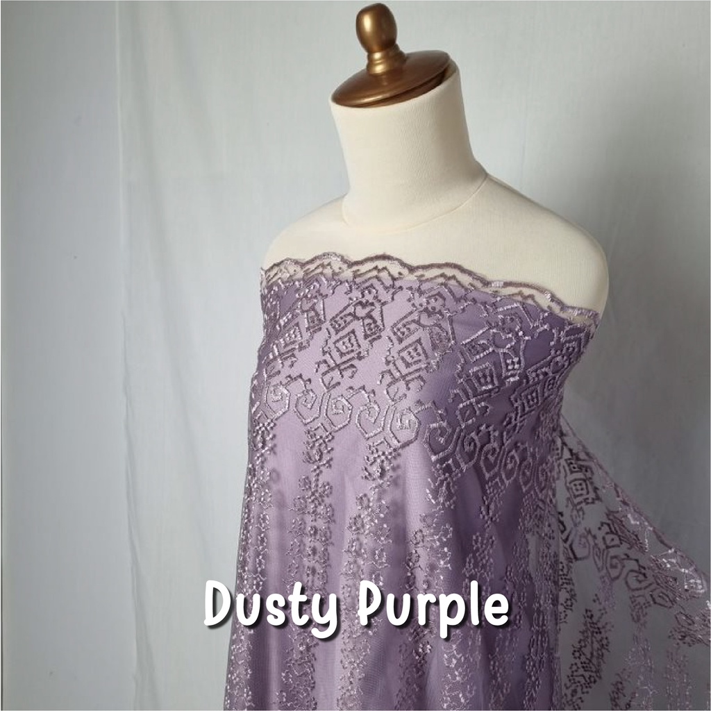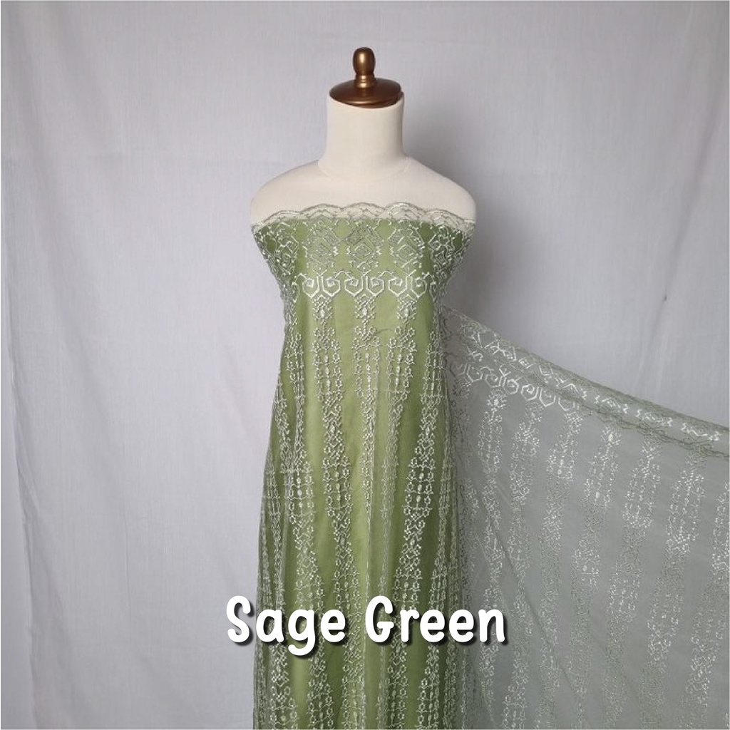 Kain Brokat Tile Prancis Premium 0.5 Meter Motif Bunga Salur Garis Etnik Gaun Bridesmaid