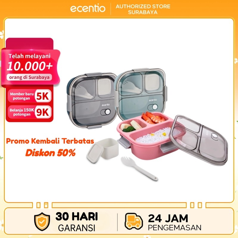Lunch Box Ecentio Anti Tumpah 3 Grid 1100Ml Wadah Bekal Sup Free Sendok