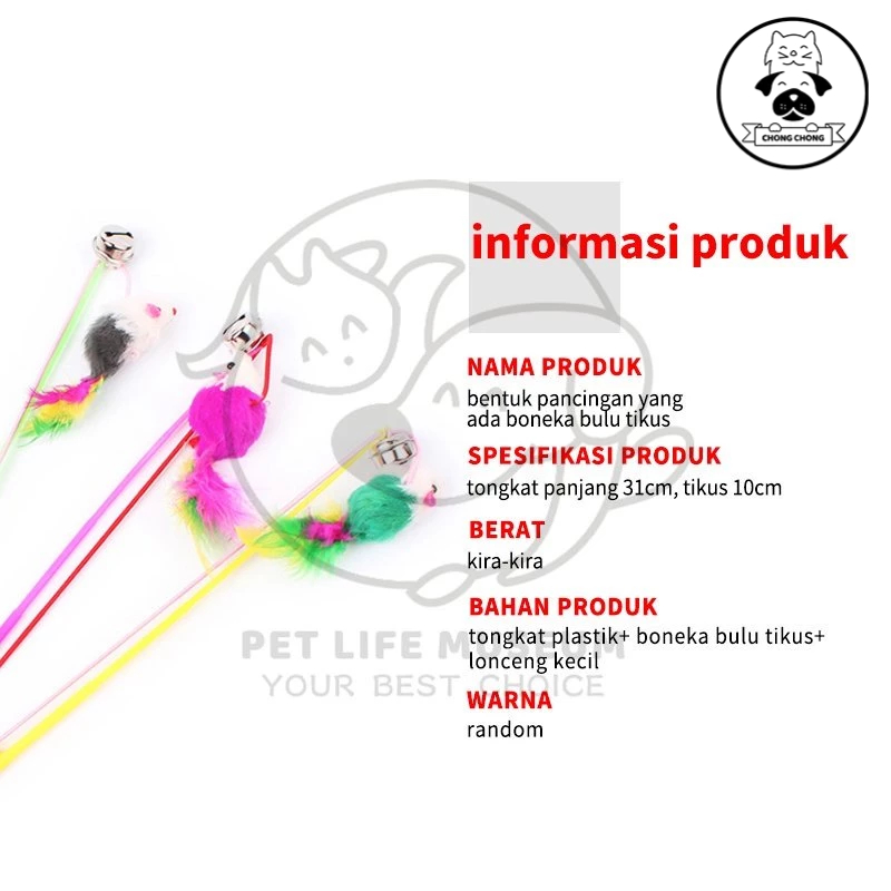 Mainan Kucing – Tongkat Pancingan Tikus Bulu, Cat Teaser – – Mainan Kucing, Bulu, Teaser, Aksesoris Hewan.