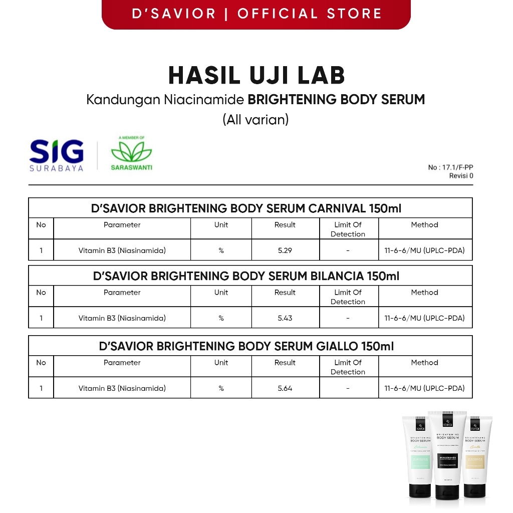 Serum Tubuh Niacinamide 5 PERSEN D'savior Brightening Body Serum Carnival 150ml Pelembab Pencerah