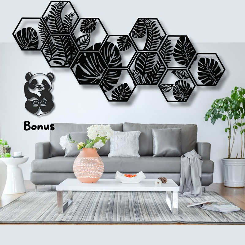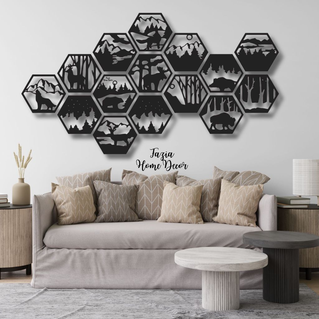 Kreasi Kayu 3D Ukuran Besar Hexagonal Animal 1 Set Isi 15 Panel Wall Decor