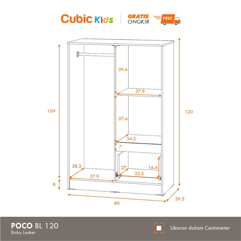 Lemari Pakaian Anak Gambar 2 Pintu Poco Bl 120 Kids Furniture Anak