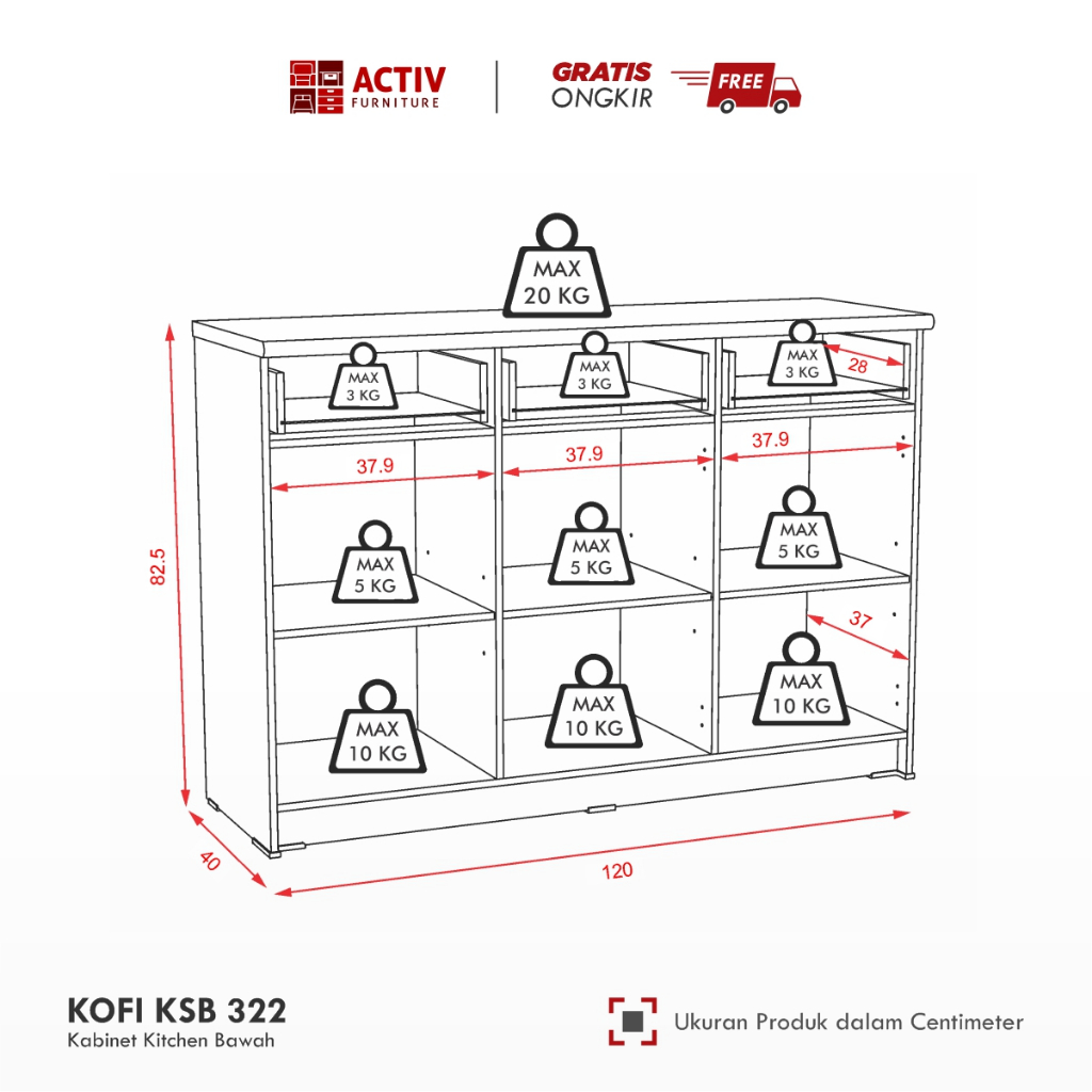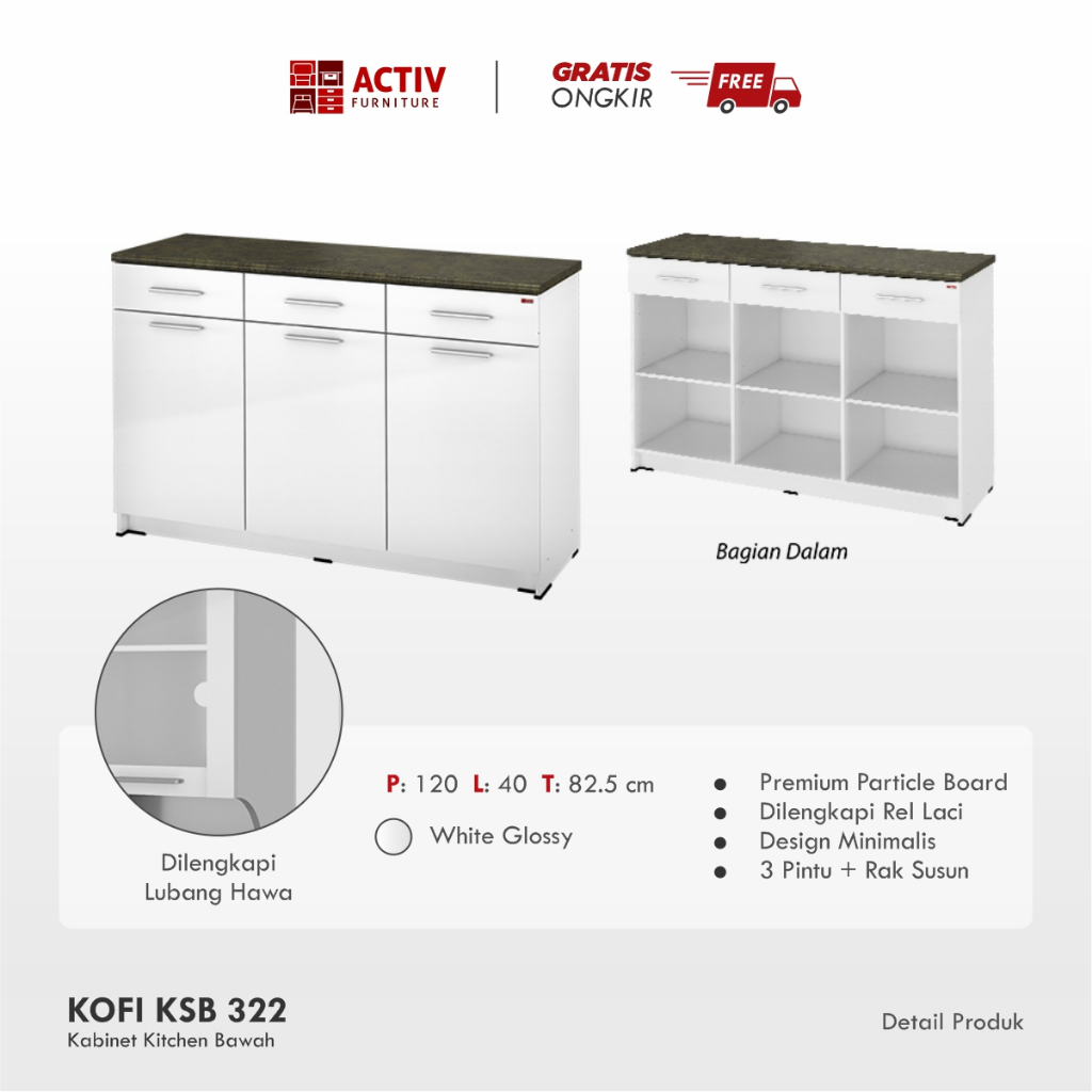 Kitchen Set 3 Pintu Minimalis Rak Bawah Lemari Dapur Kofi Ksb 322 Modern