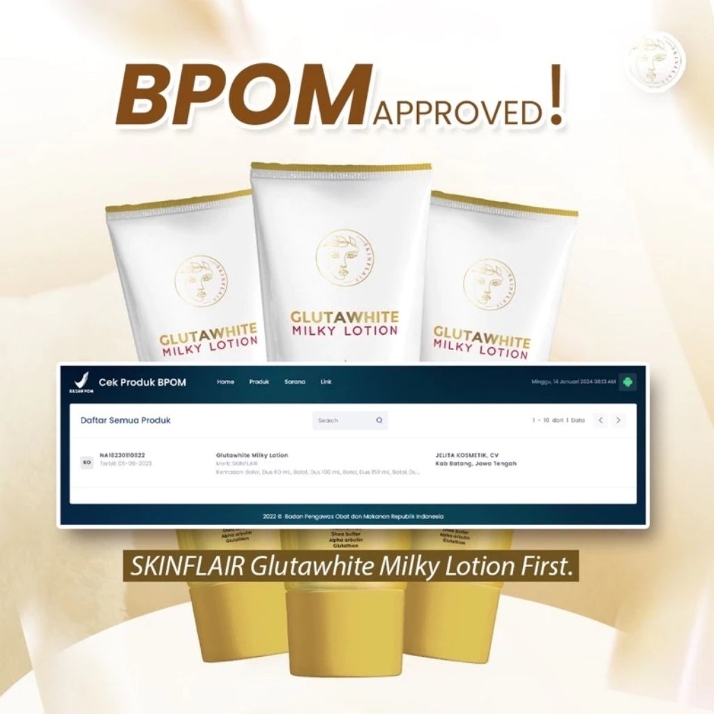 Lotion Tubuh Glutathione Skinflair Glutawhite Milky Lotion Booster 150ml 10x Whitening