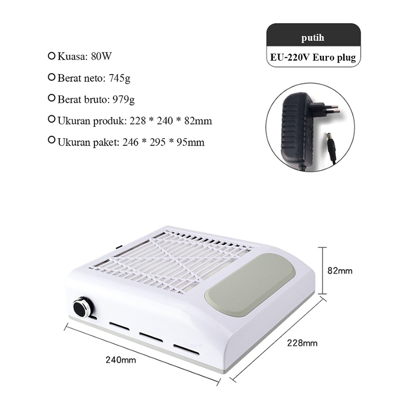 Nail Dust Collector Adjustable Fan 80W/40W Vacuum Cleaner Mesin Manicure Penghisap Debu Kua