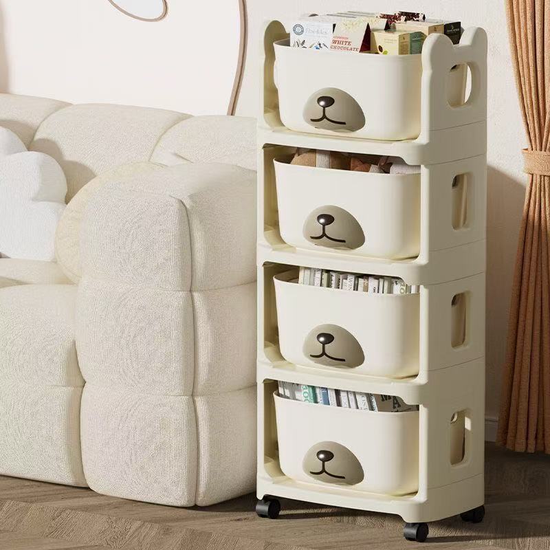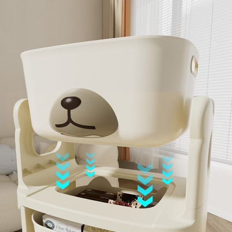 Rak Serbaguna Karakter Beruang Rak Plastik Estetik 3/4 Tingkat Dengan Roda Anak