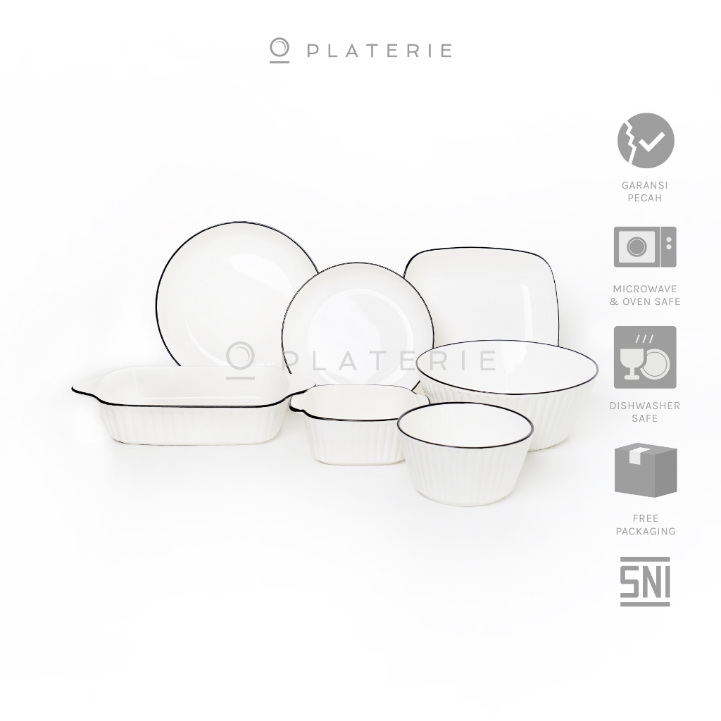 Mangkok Platerie Double Ear Porcelain Embossed Bowl 6 10 Inch Textured White