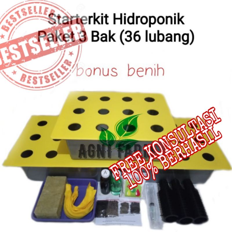 Paket Hidroponik Lengkap Pemula 3 Bak 36 Lubang Sistem Nft/Dft Tumbuh Tanaman