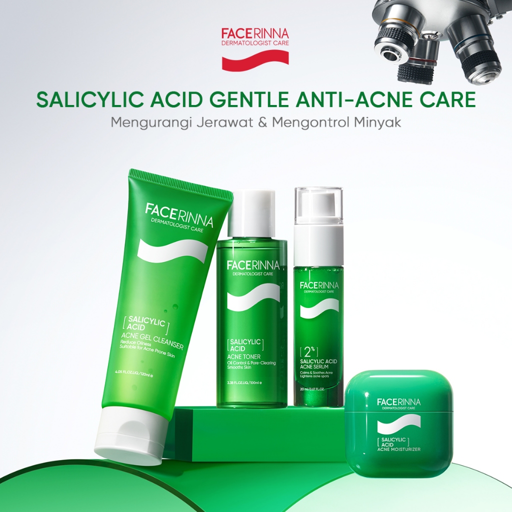 FACERINNA Skincare Set Complete Acne Solution 3pcs/4pcs Moisturizer Serum Toner Cleanser Anti Jerawat Treatment