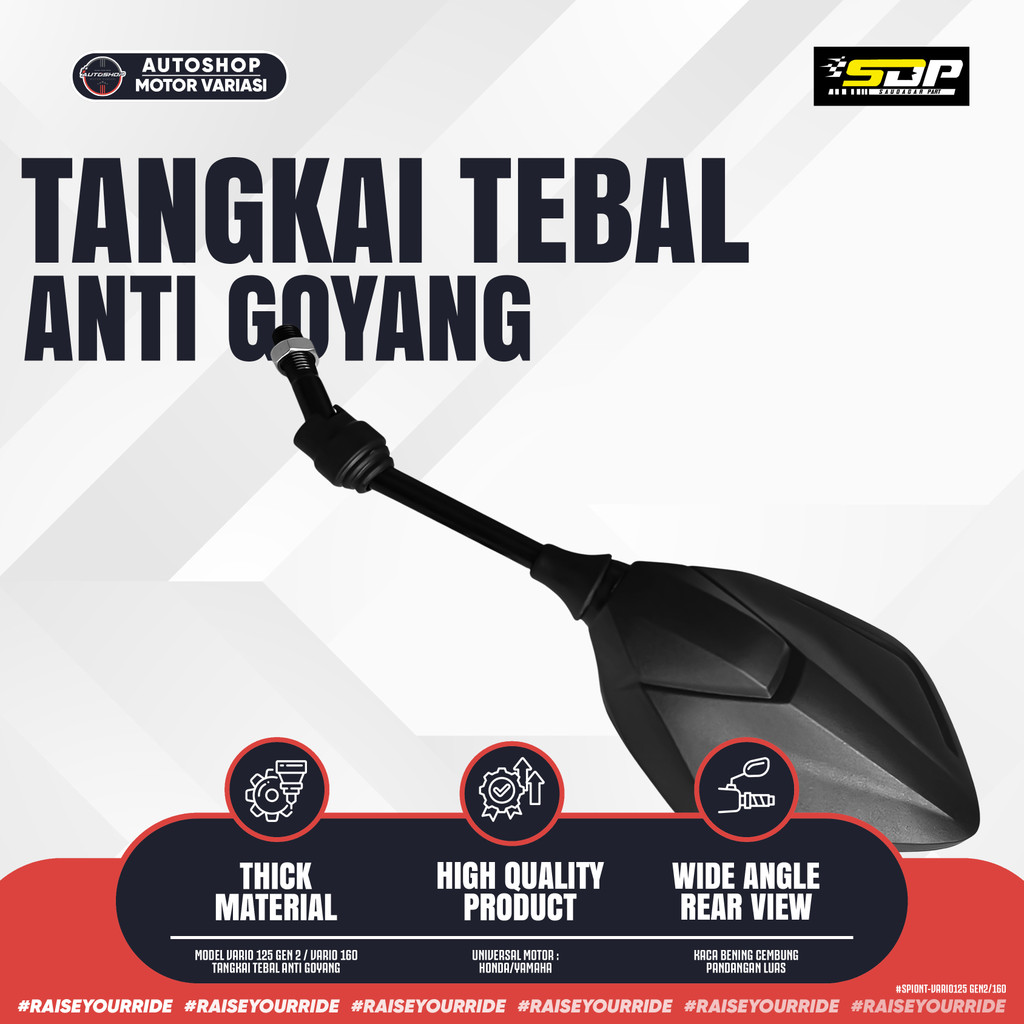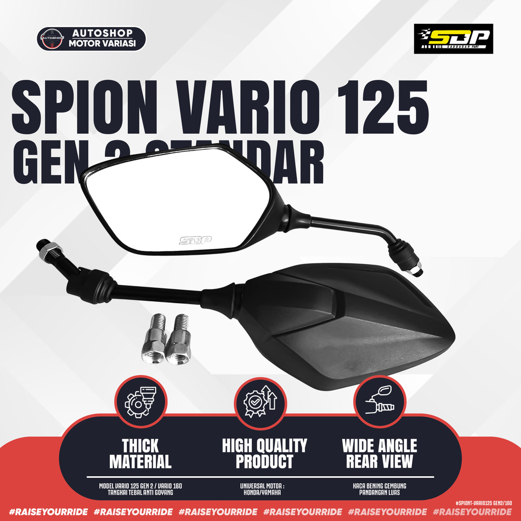 Spion Vario 160 Standar Kaca Cembung Mirror Pcx 150/160 Drat 14 Bonus Adaptor