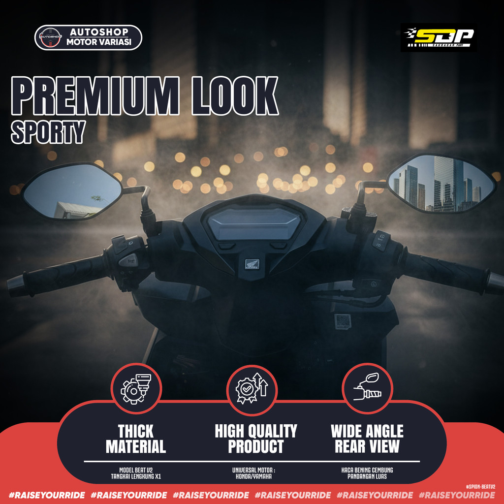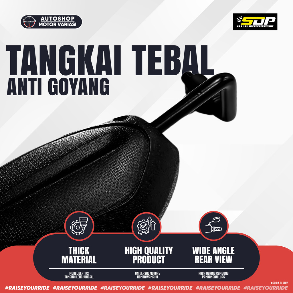 Spion Beat V2 Daun Model Sporty Kaca Bening Cembung Drat 14 Honda Pnp
