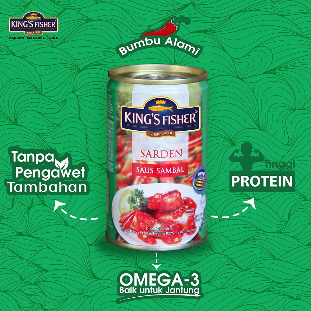 Makanan Kaleng Kings Fisher Sarden Saus Sambal 425G Ikan Lezat Gurih Praktis