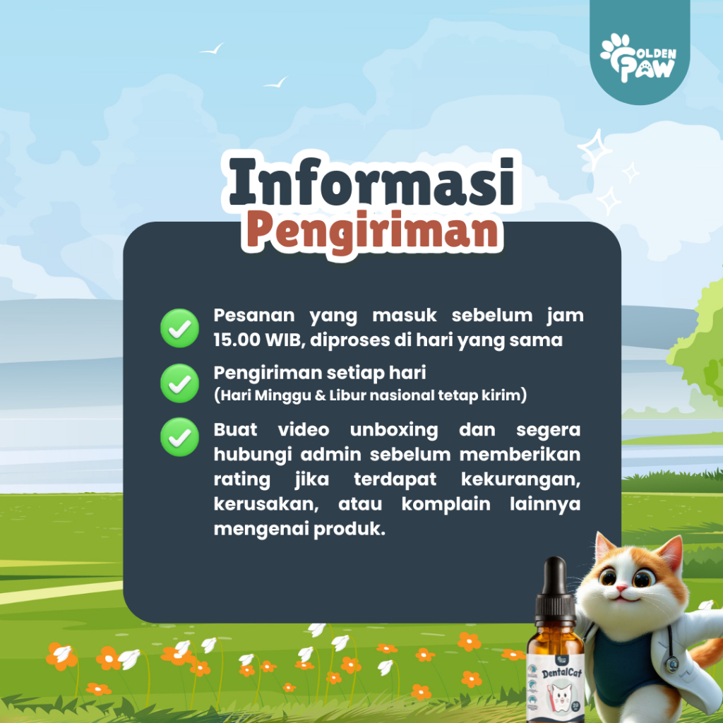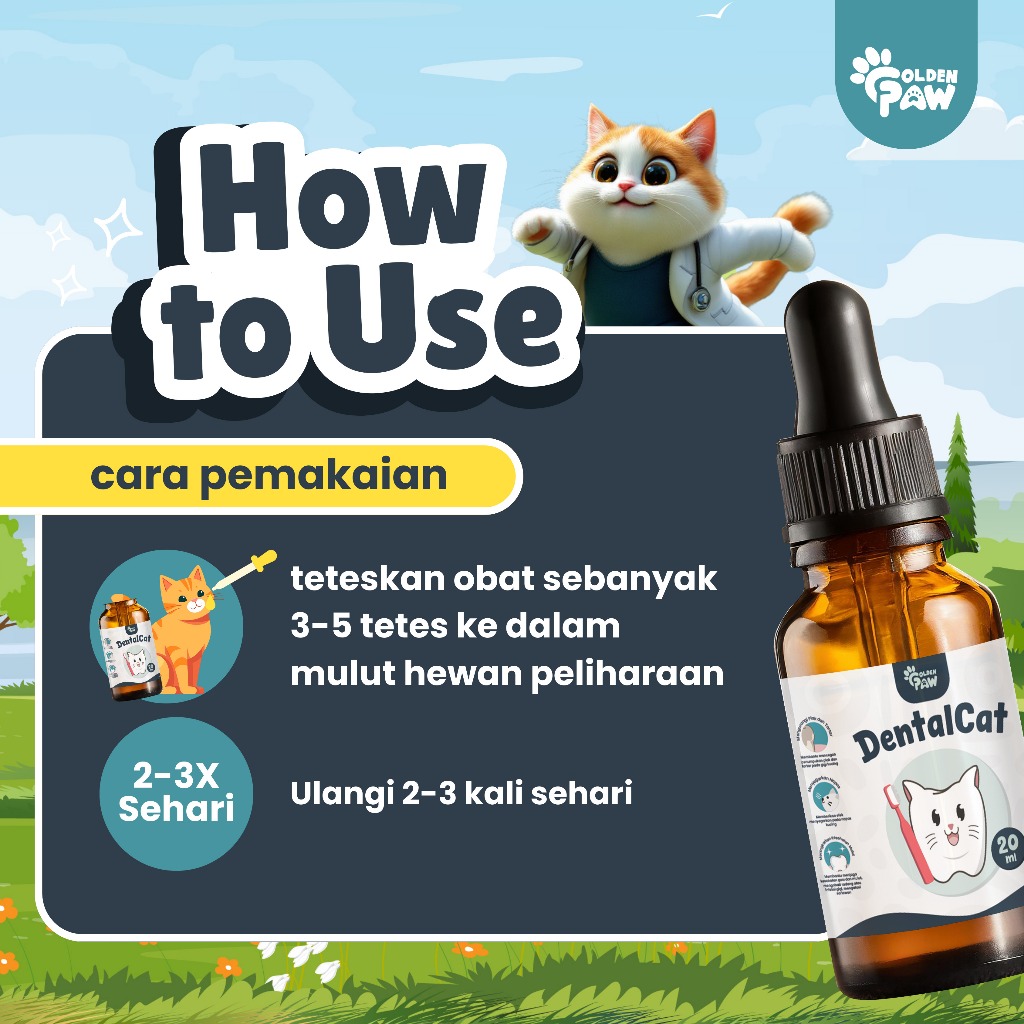 Obat Tetes Mulut Dentalcat Golden Paw Kucing Sariawan Radang Bau Mulut Plak Gigi Hewan 20Ml