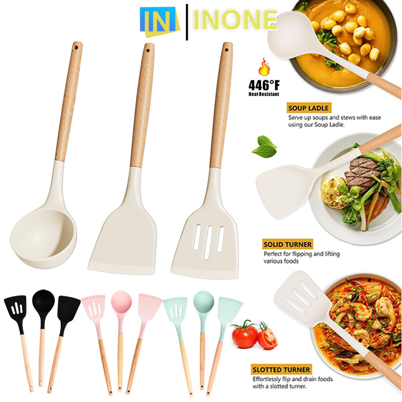 Alat Masak Inone 3Pcs Silikon Cooking Utensil Kuat Spatula Tumis Goreng Tahan Panas