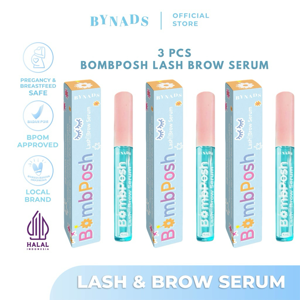 Serum Alis & Bulu Mata 3pcs Penumbuh Bulu Mata Dan Alis Bynads Bombposh Lash & Brow Serum 3pcs