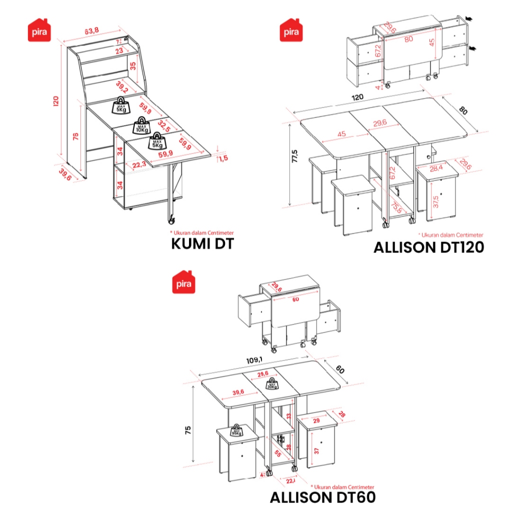 Pira Kumi Dt Meja Makan Lipat Dengan Bufet Minimalis Serbaguna