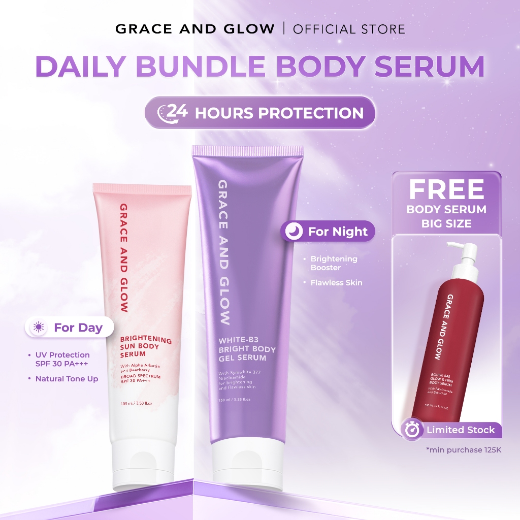 Grace and Glow Daily Bundle Body Serum Day & Night White-B3 Bright Gel Serum + Brightening Sun Body Lotion
