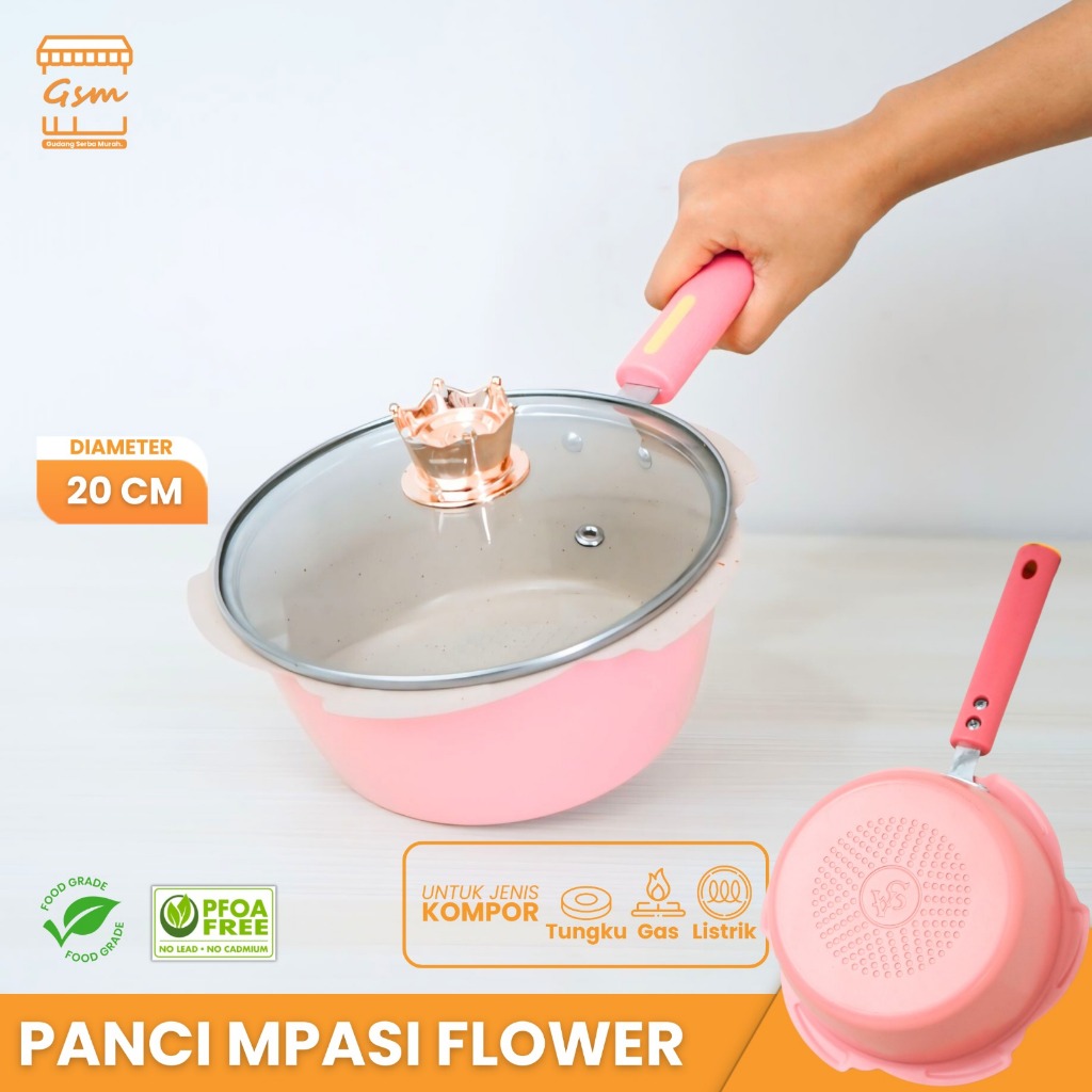 Panci Flower Sakura Gsm Set Panci Dan Tutup Kaca 20Cm Multifungsi