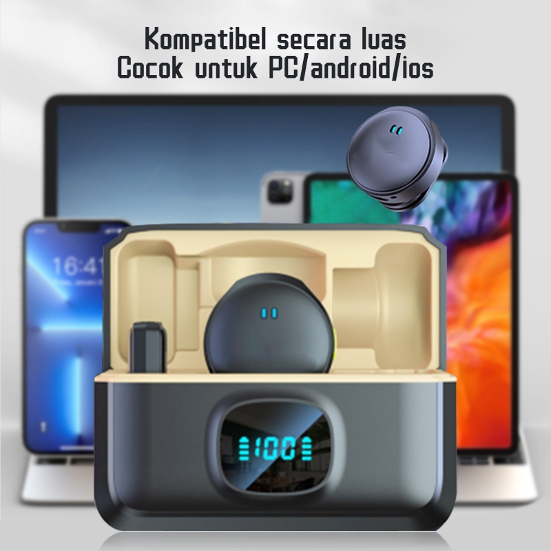 Mikrofon Nirkabel Lavalier Wireless Clip-On 2 Mic Portable Dengan Charging Case