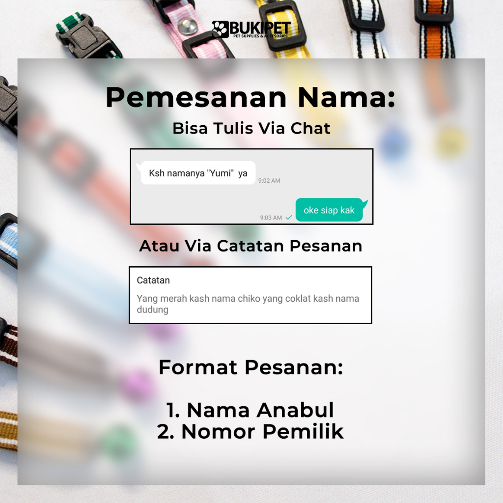 Kalung Kucing Custom Nama Nylon Stripe Bukipet Akrilik Putih Necklace