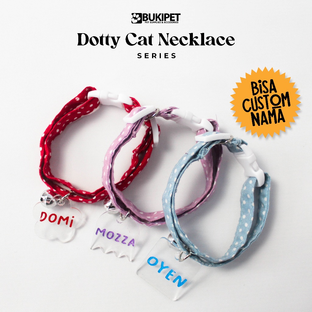 Kalung Kucing Custom Nama Lonceng Keren Dotty Cat Necklace