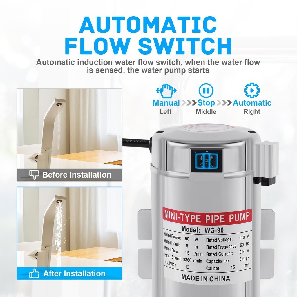 Pompa Pendorong Tekanan Air Booster Pump 180W Otomatis Shower Water Heater