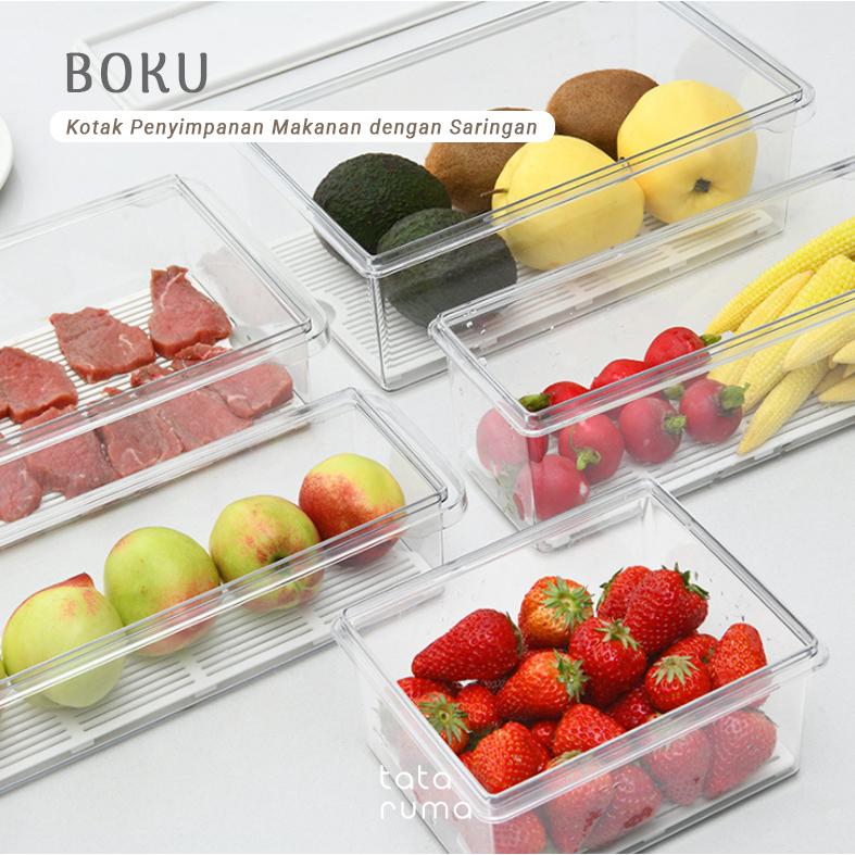 Kotak Kontainer Penyimpanan Makanan Tataruma Boku Fridge Freezer Food Storage Dengan Saringan