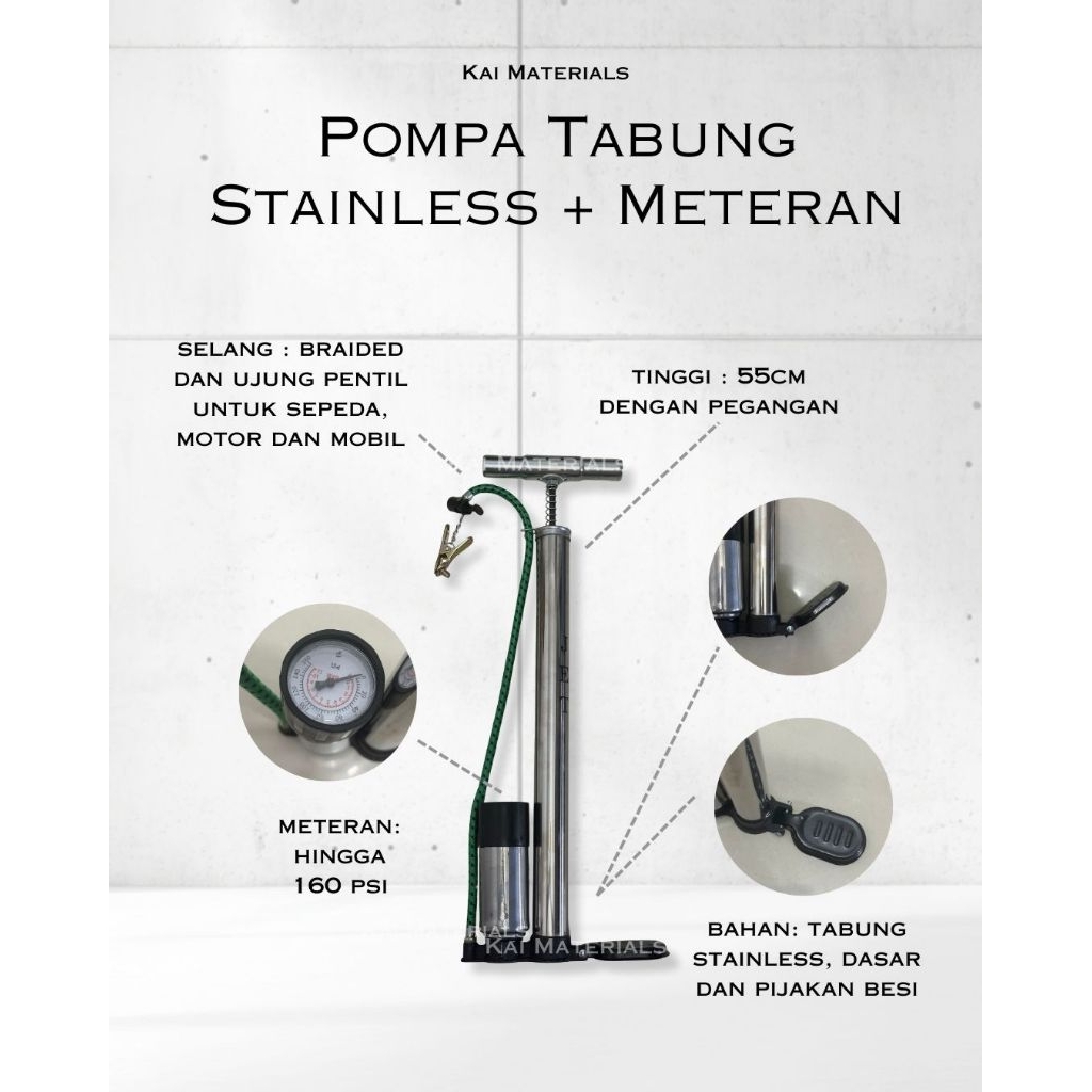 Pompa Ban Jet Angin Tabung Meteran Stainless Pompa Motor Sepeda Mobil Tangan Tekanan Tinggi Murah
