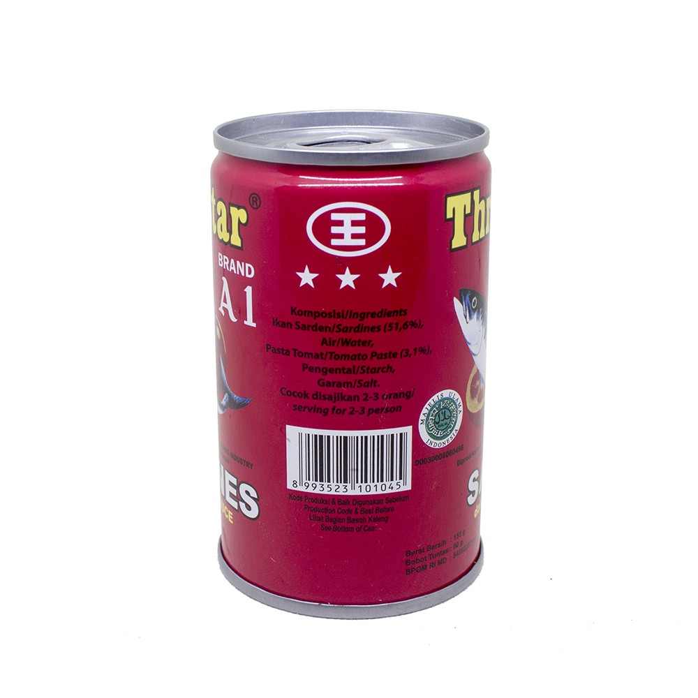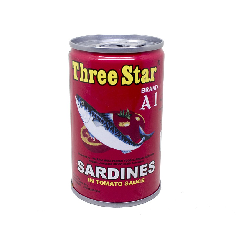 Makanan Kaleng Three Star Sarden Mini Saus Tomat 155G Ikan Lezat Praktis