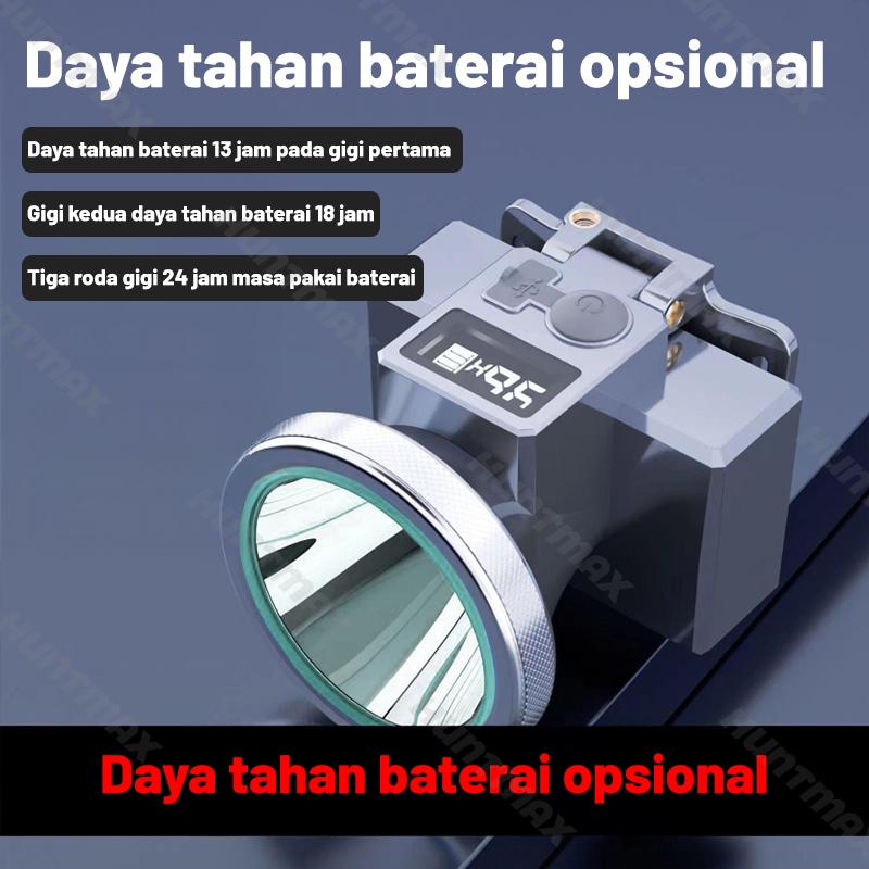 Senter Kepala HUNTMAX HM-L56 Ringan 60W 800 Lumen Baterai 8000mAh Tidak Melelahkan