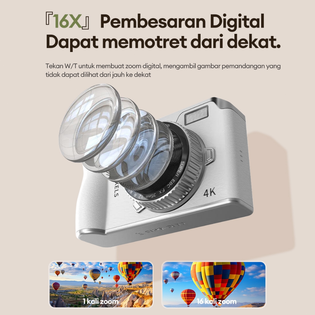Digital Camera 64mp, 16x Zoom, 4k, Led, Anti Goyang Tktkt Kamera Digital Ccd 64mp, 4k, Led, Digital Camera