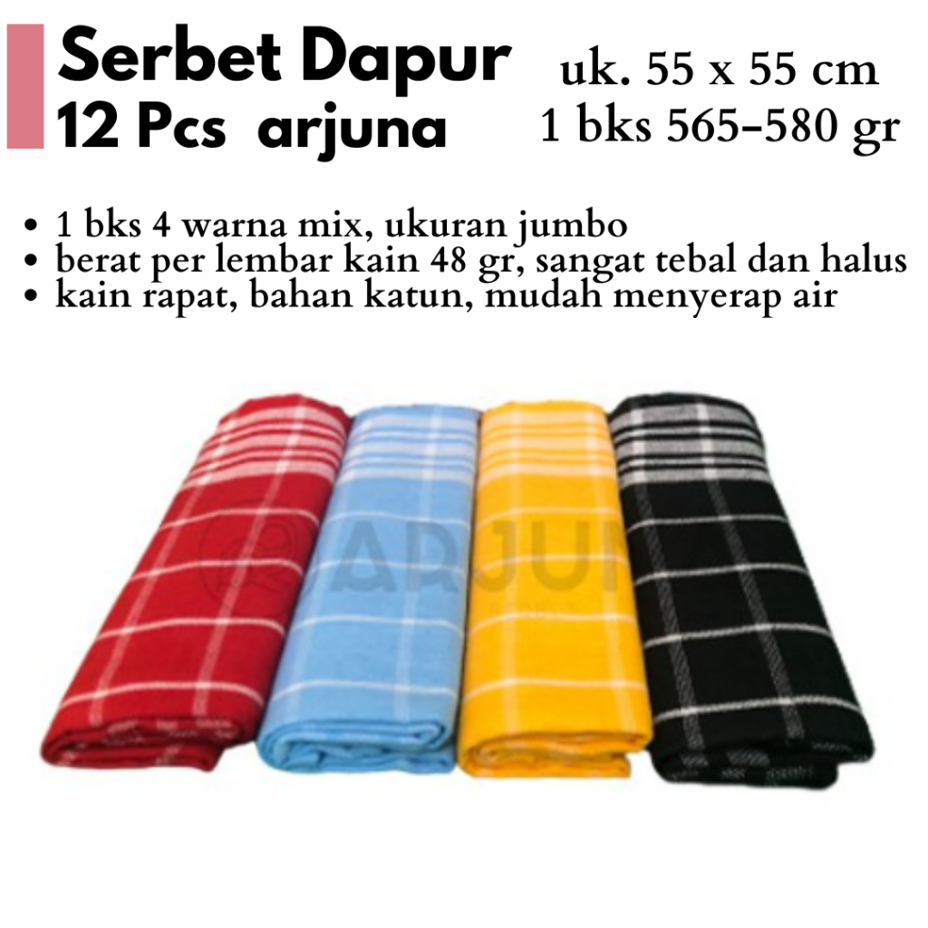 Serbet Dapur 12 Pcs Tebal Kain Lap Kotak Tangan