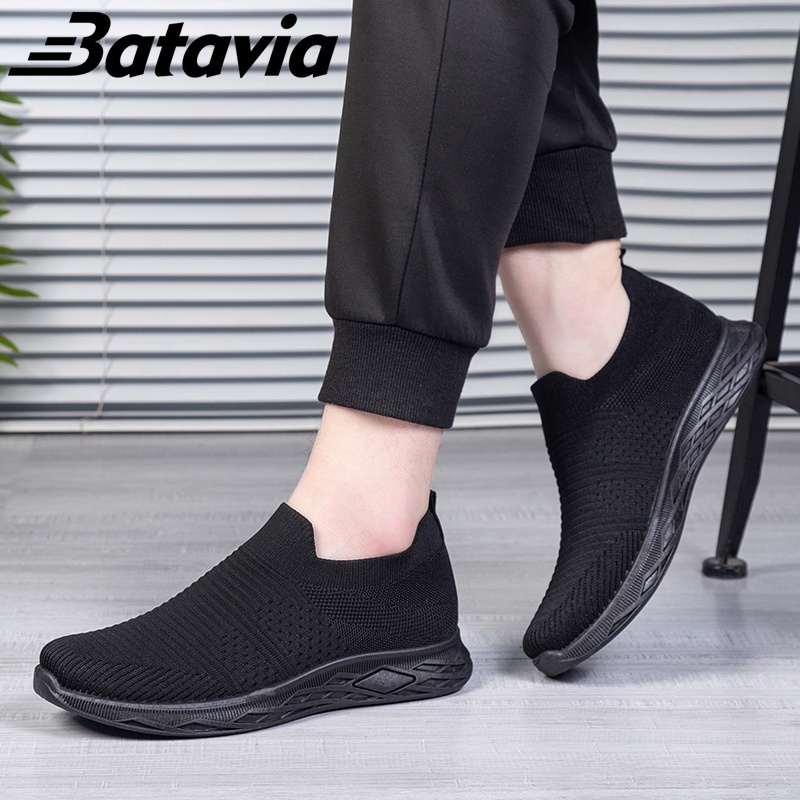 Sepatu Ringan Pria Batavia Hitam Senior Flyknit Bernapas Sneakers Santai B33 B34