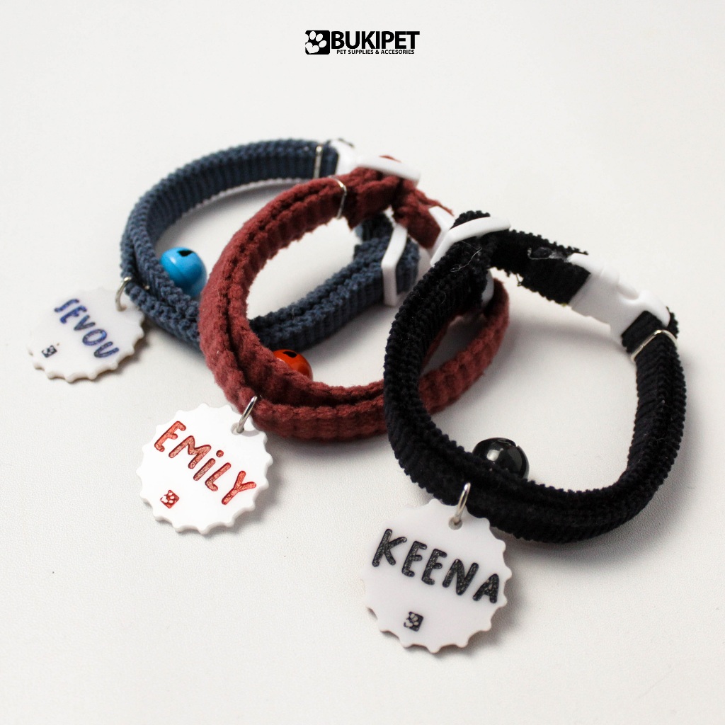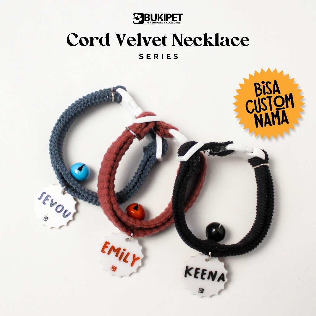 Kalung Kucing Nama Custom Lonceng Besar Bukipet Cord Velvet Necklace