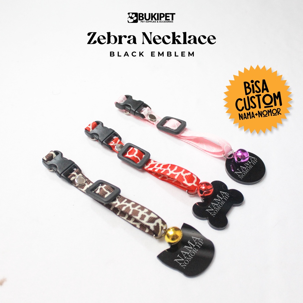 Kalung Kucing Custom Nama Nylon Stripe Bukipet Zebra Necklace Akrilik Hitam
