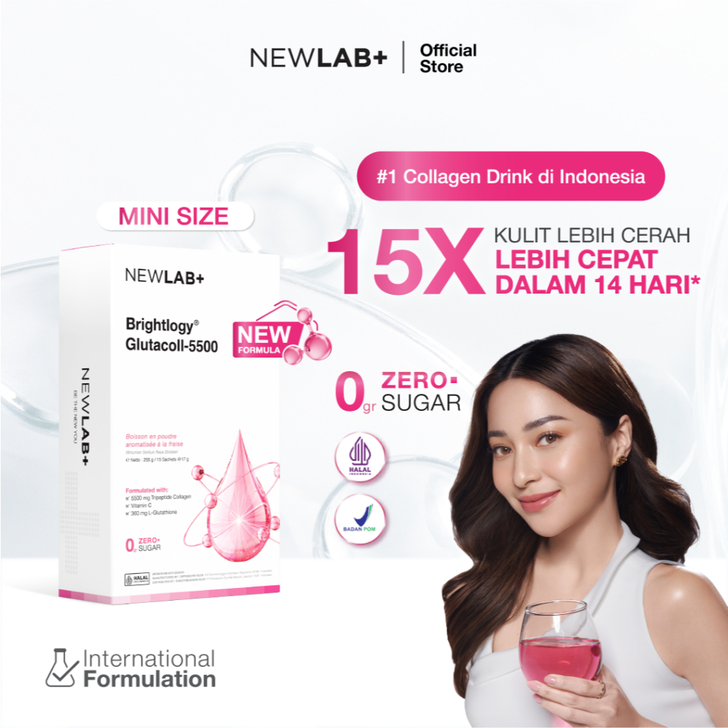 Glutathione Drink Collagen Mencerahkan Newlab Mini Brightlogy Glutacoll-5500 7 Sachet Bpom