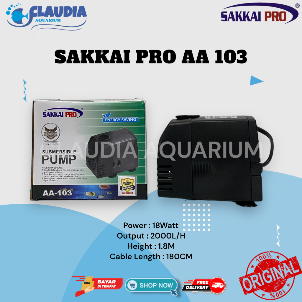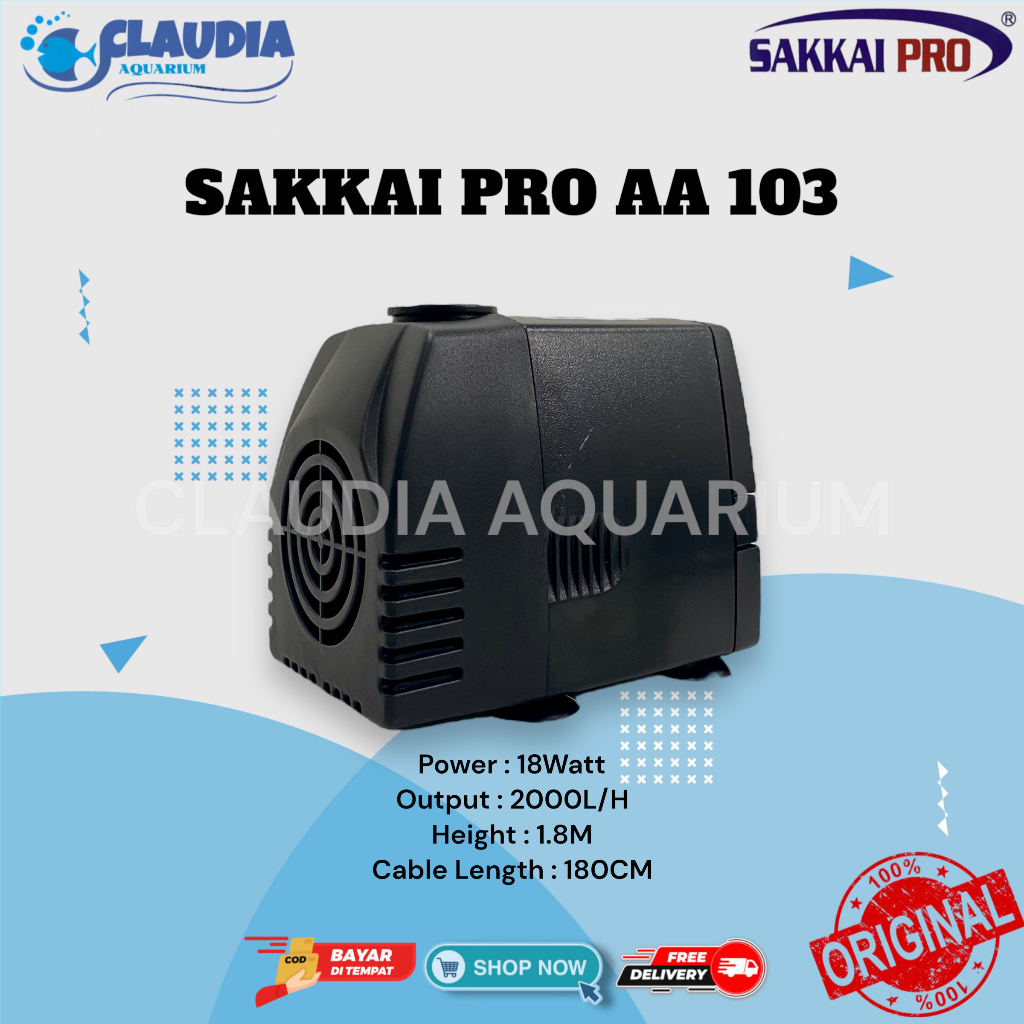 Pompa Submersible Sakkai Pro Aa103 18 Watt Aquarium Kolam Hidroponik 2000L/H