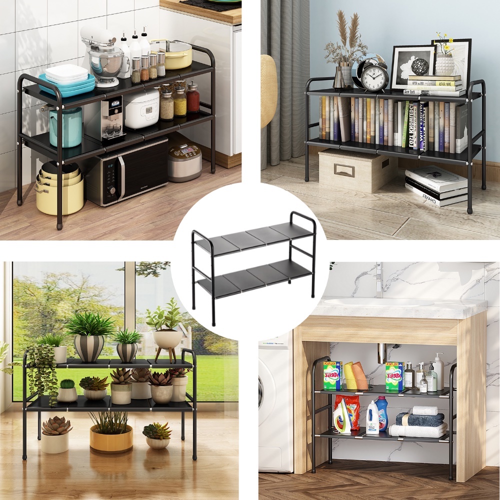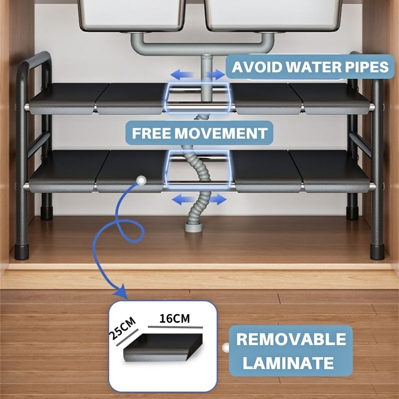 Rak Bawah Sinki Extendable Stainless Steel Kitchen Organizer Storage Shelf Serbaguna Dapur