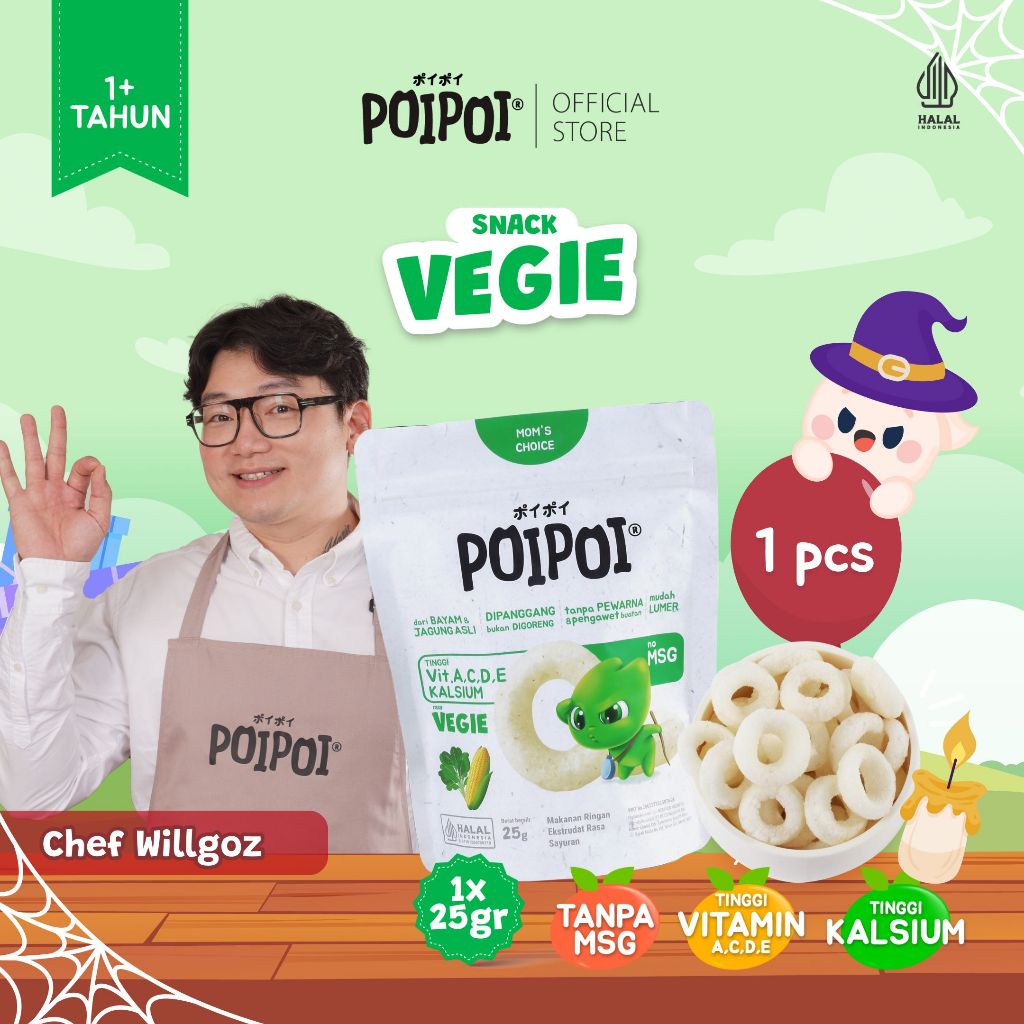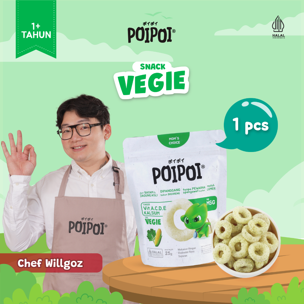 Poipoi Snack Sehat Anak Rasa Vegie 25Gr Non Msg Tinggi Vitamin Bayam Jagung