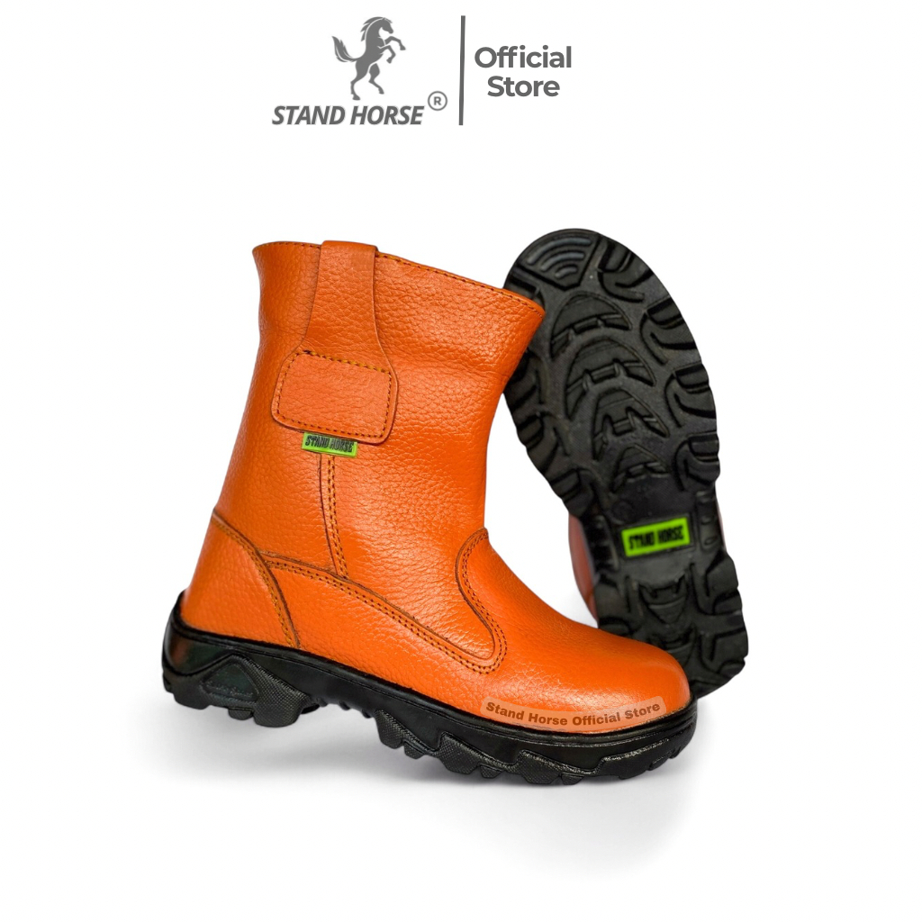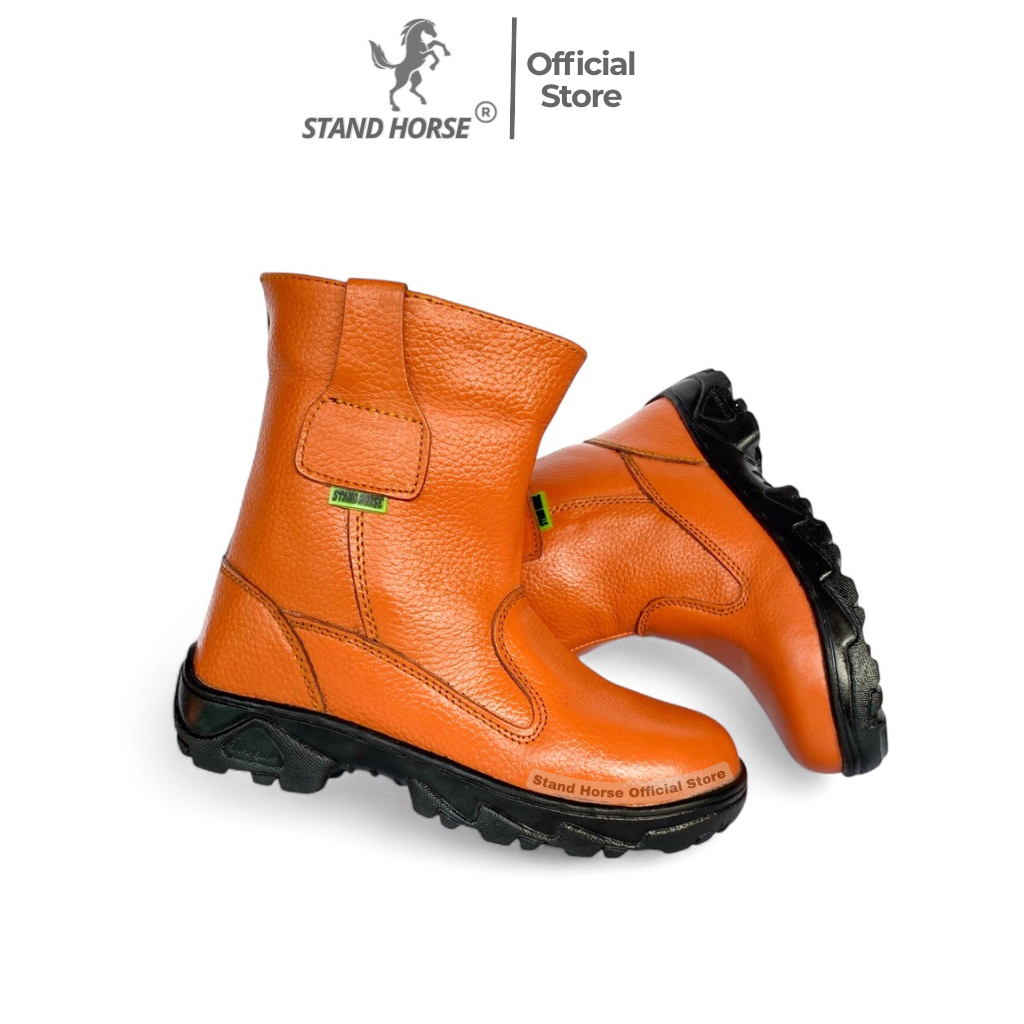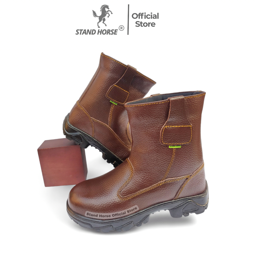 Sepatu Safety Boots Stand Horse Kulit Sapi Ujung Besi Pria Unisex Kerja Proyek